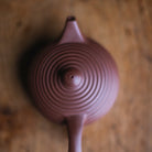 Back-Handle Teapot, Teapot (body and lid) handmade by Zhang Xuefen (Xitang, Chaozhou) We include a certificate of authenticity with each teapot. Zhang Xuefen’s purple Chaozhou clay, unglazed, 7 hole direct filter