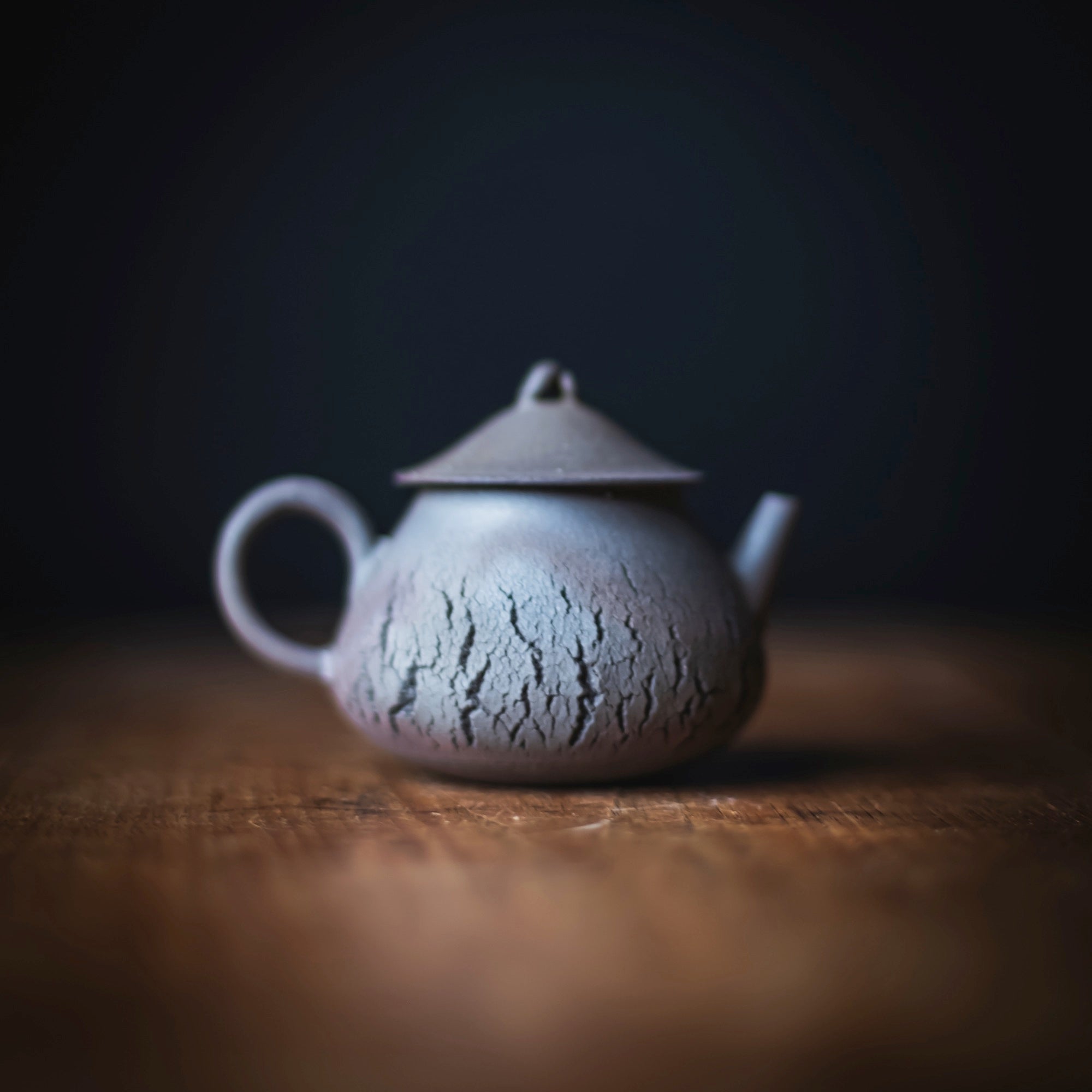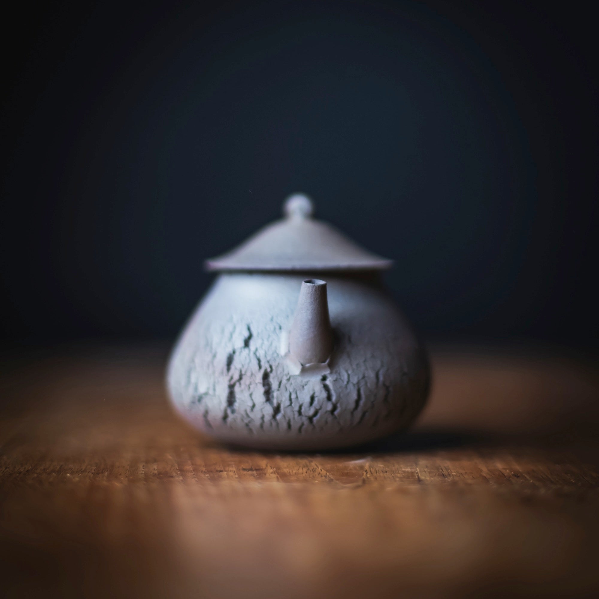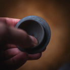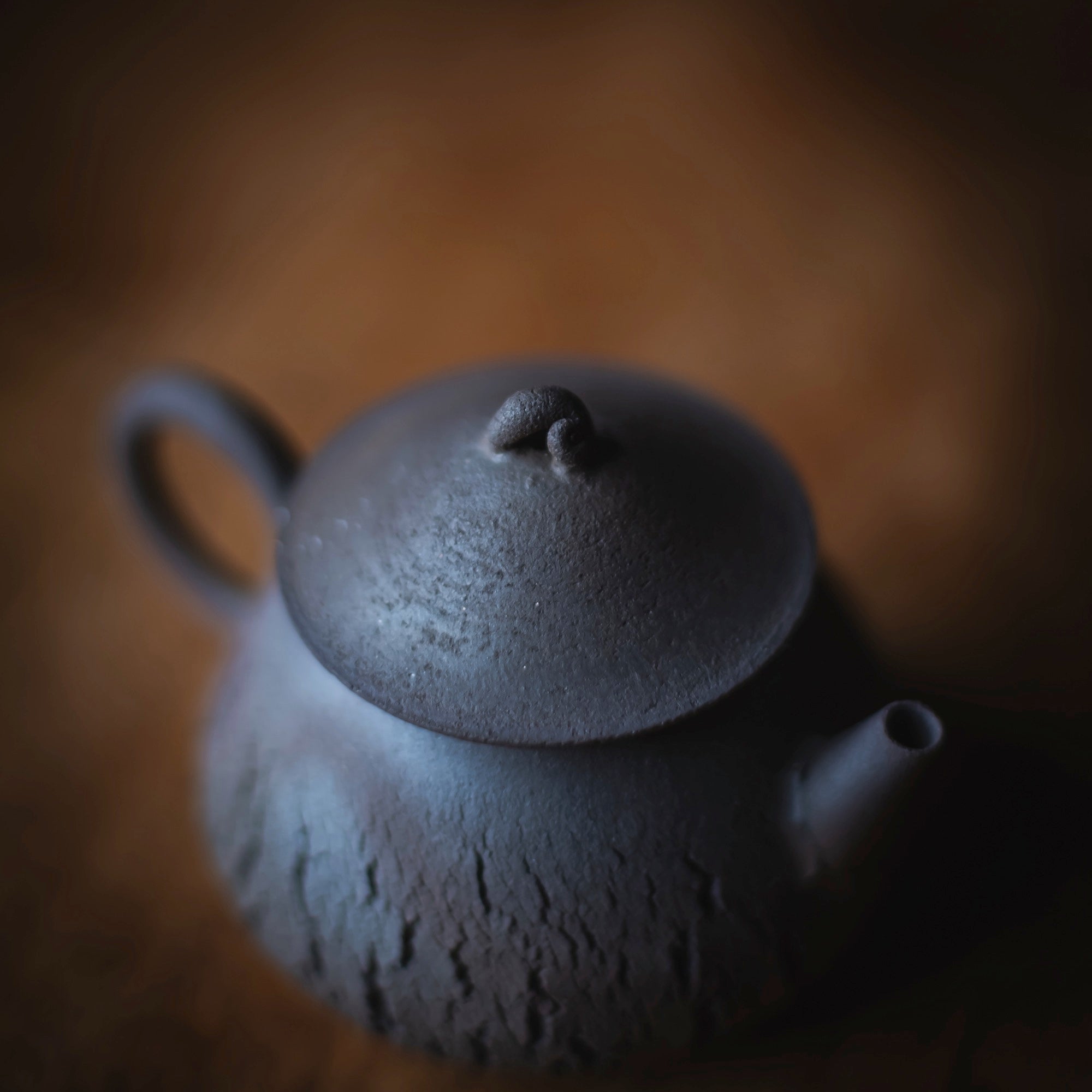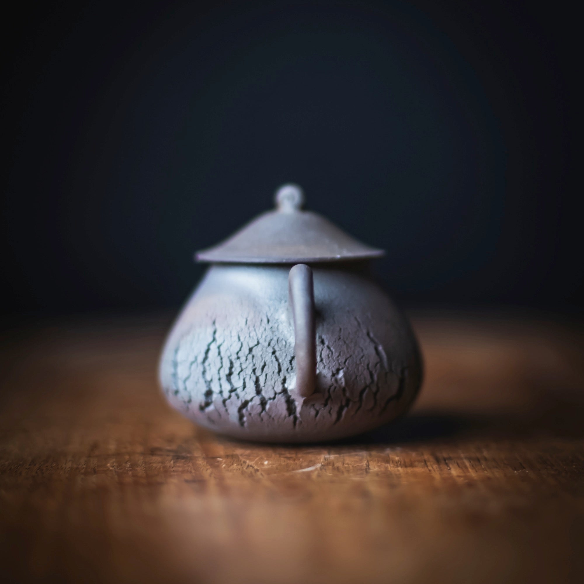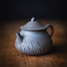 Back-Handle Teapot, wood-fired wild clay, unglazed, single hole filter equipped with removable metal mesh.