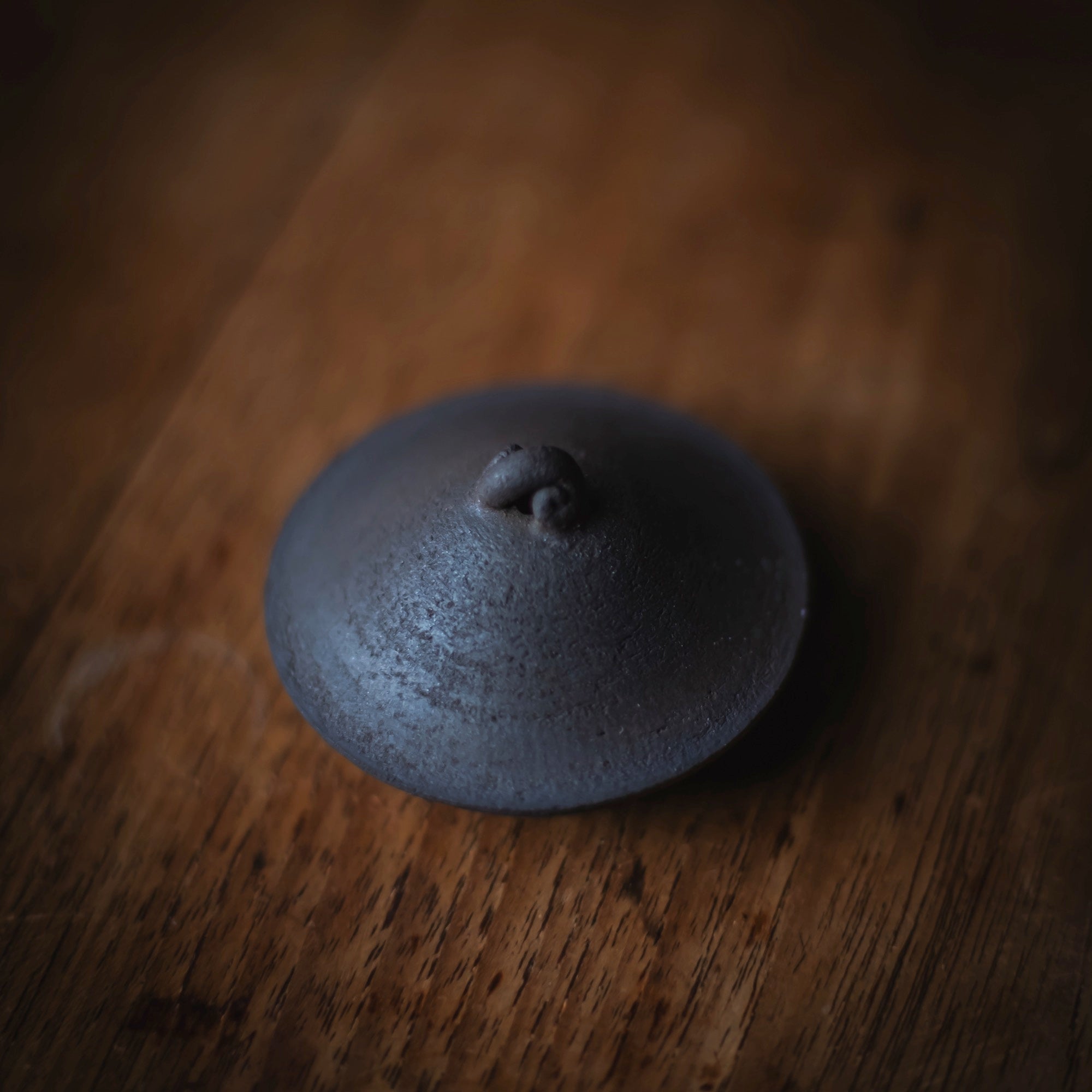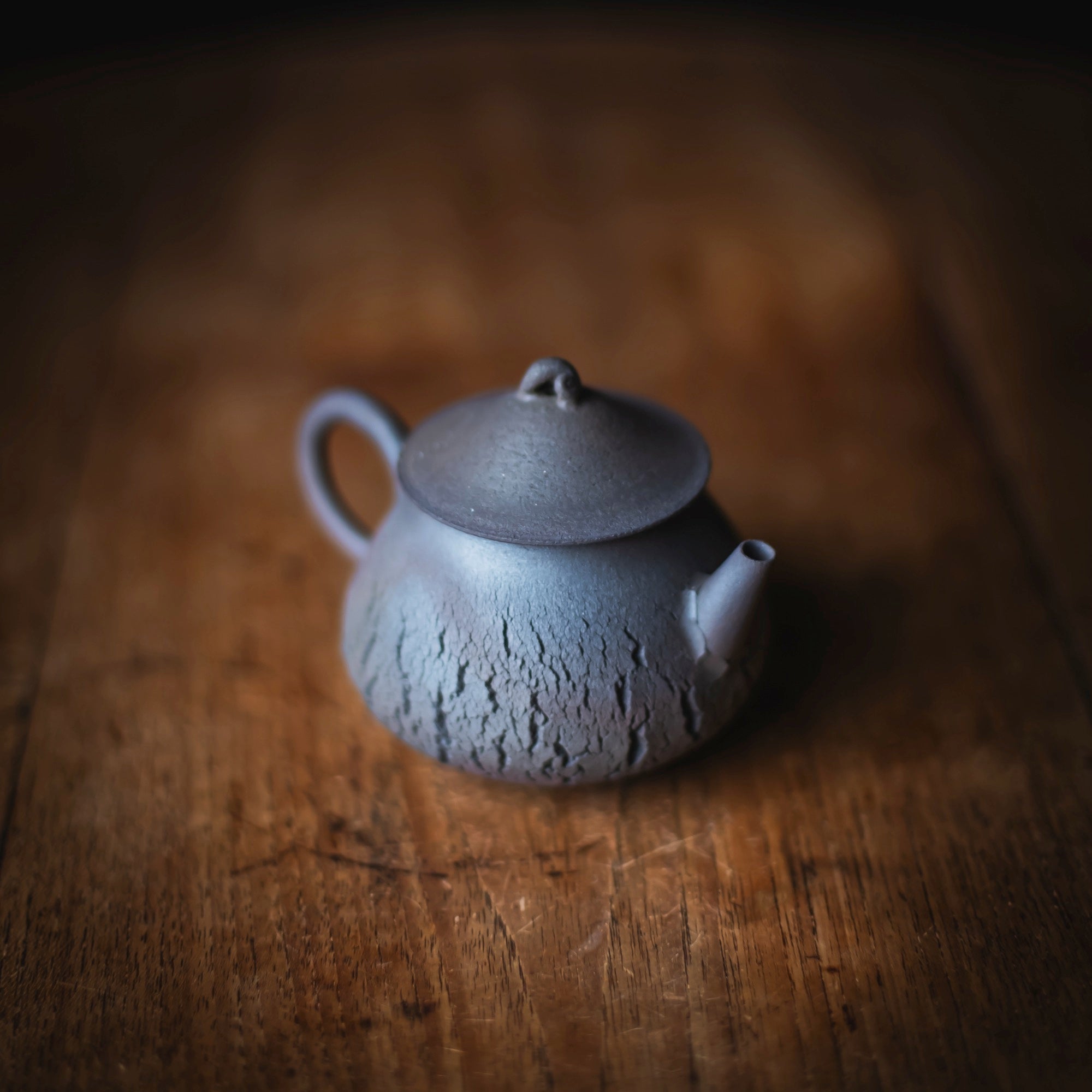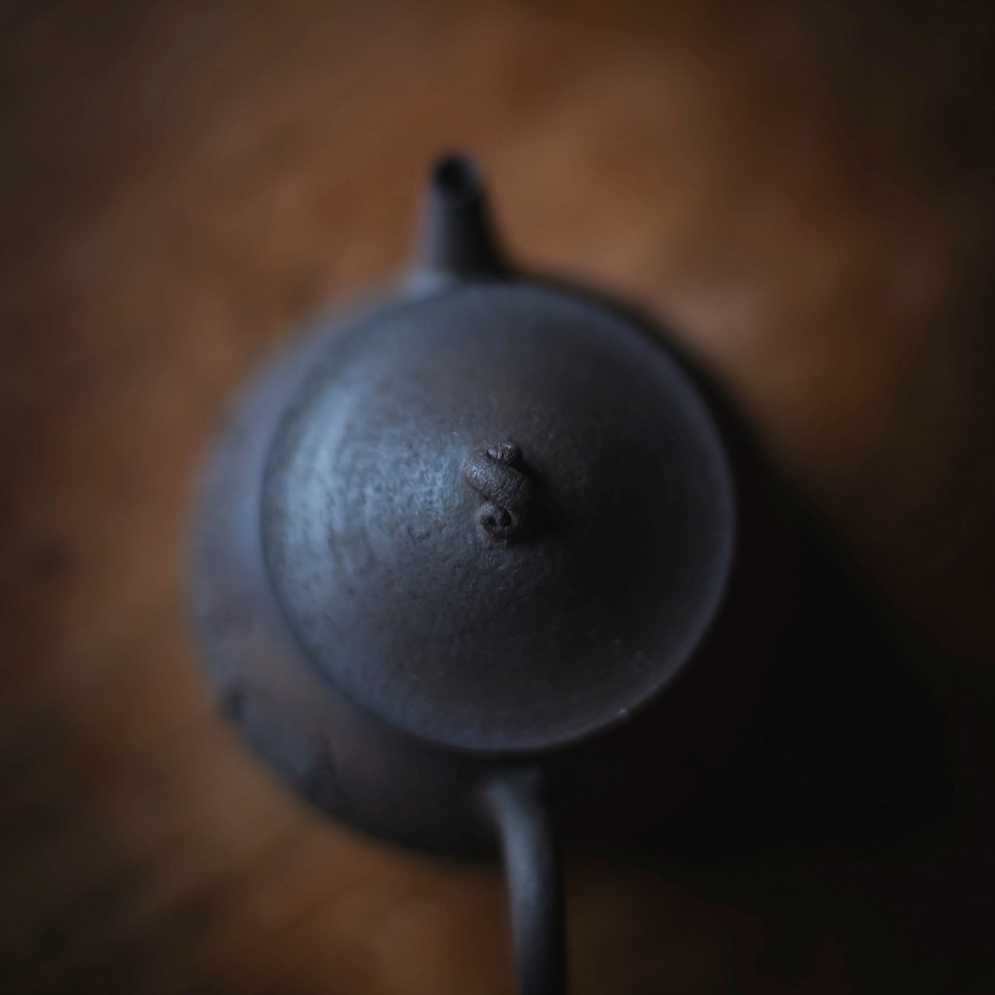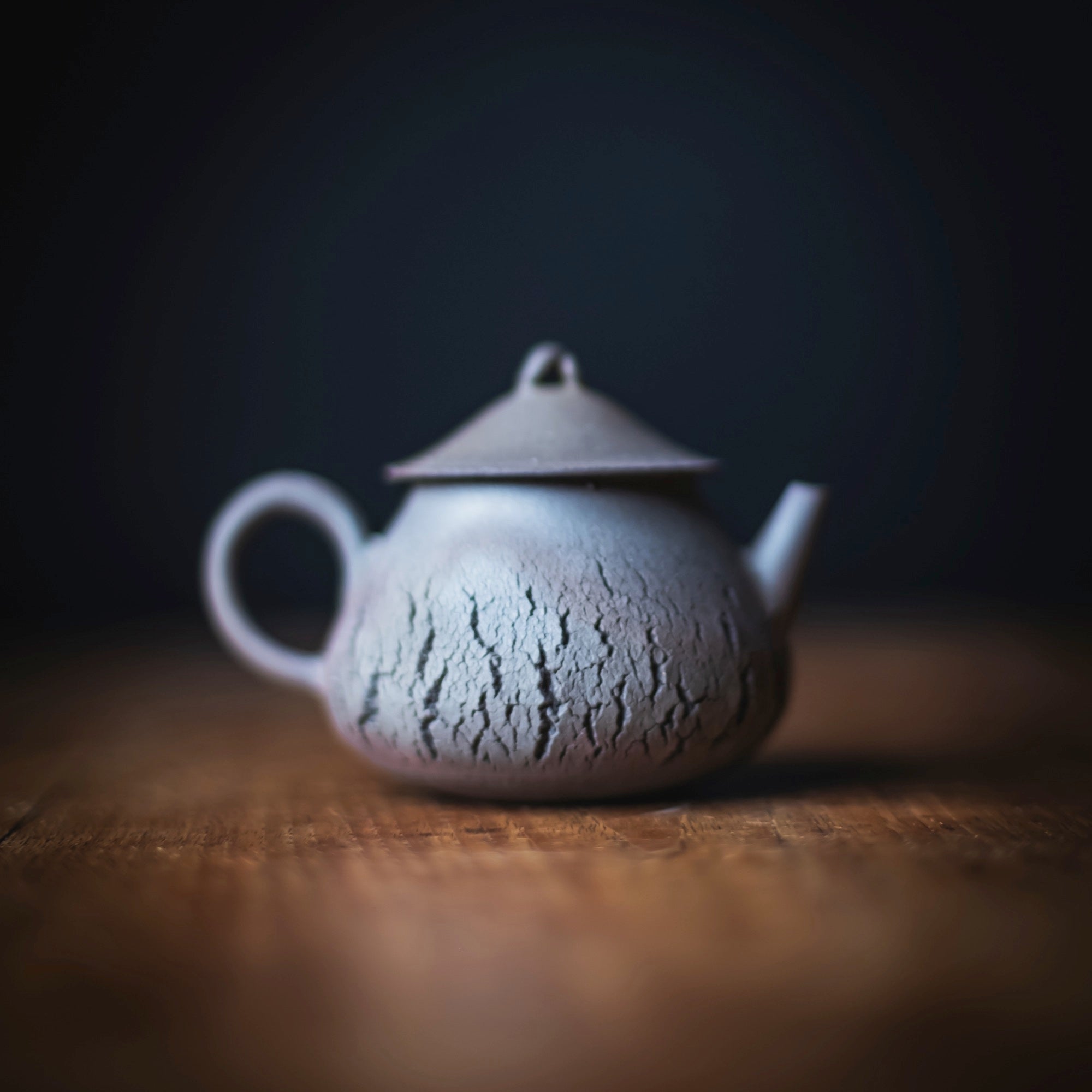 Back-Handle Teapot, wood-fired wild clay, unglazed, single hole filter equipped with removable metal mesh.