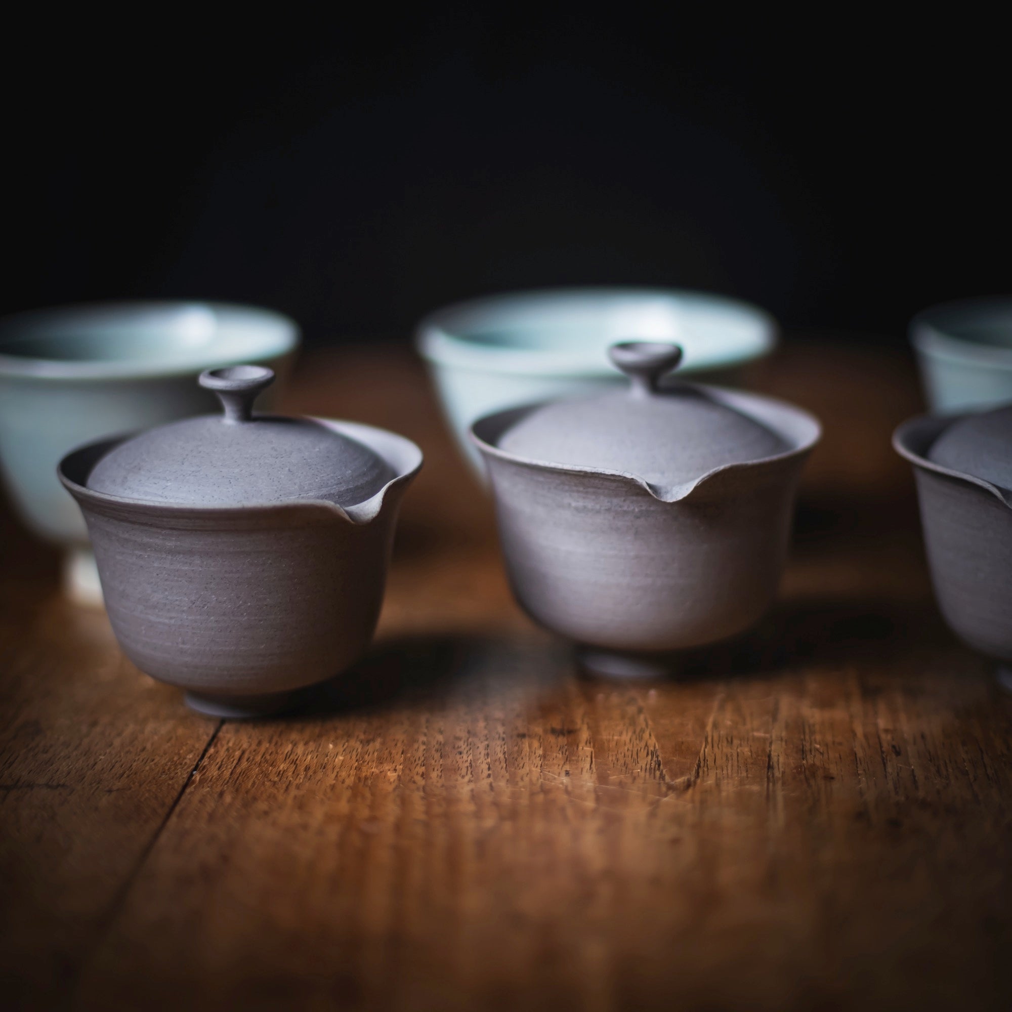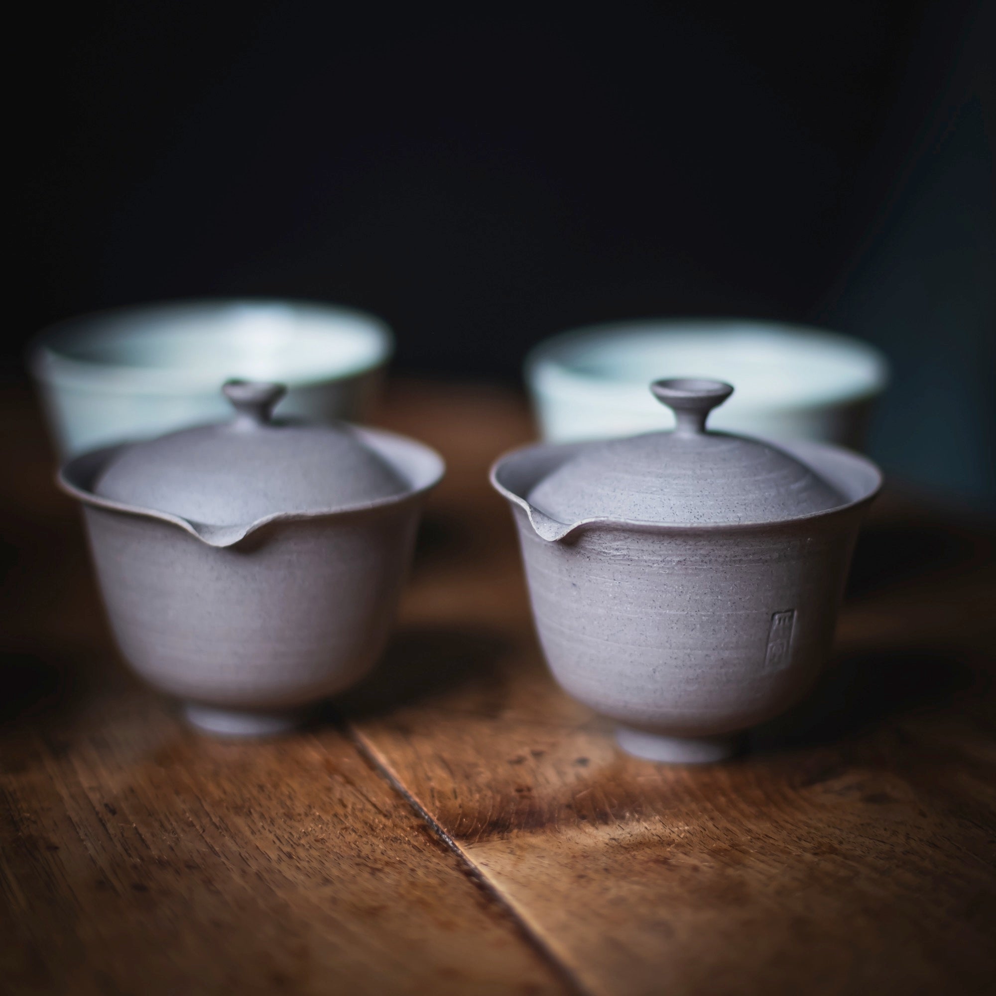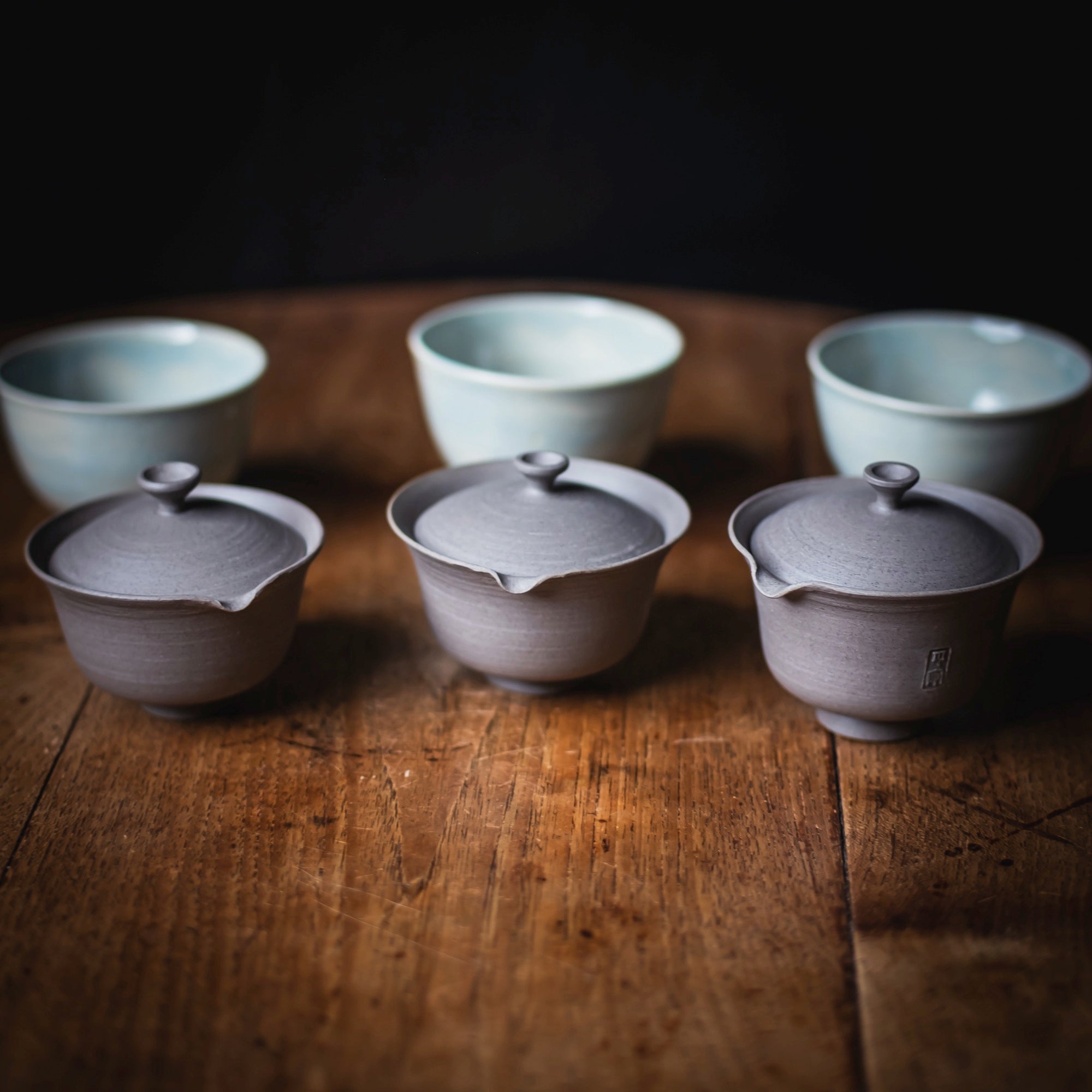 Qi Pottery Gaiwan Set "PingAn" grey (various sizes)