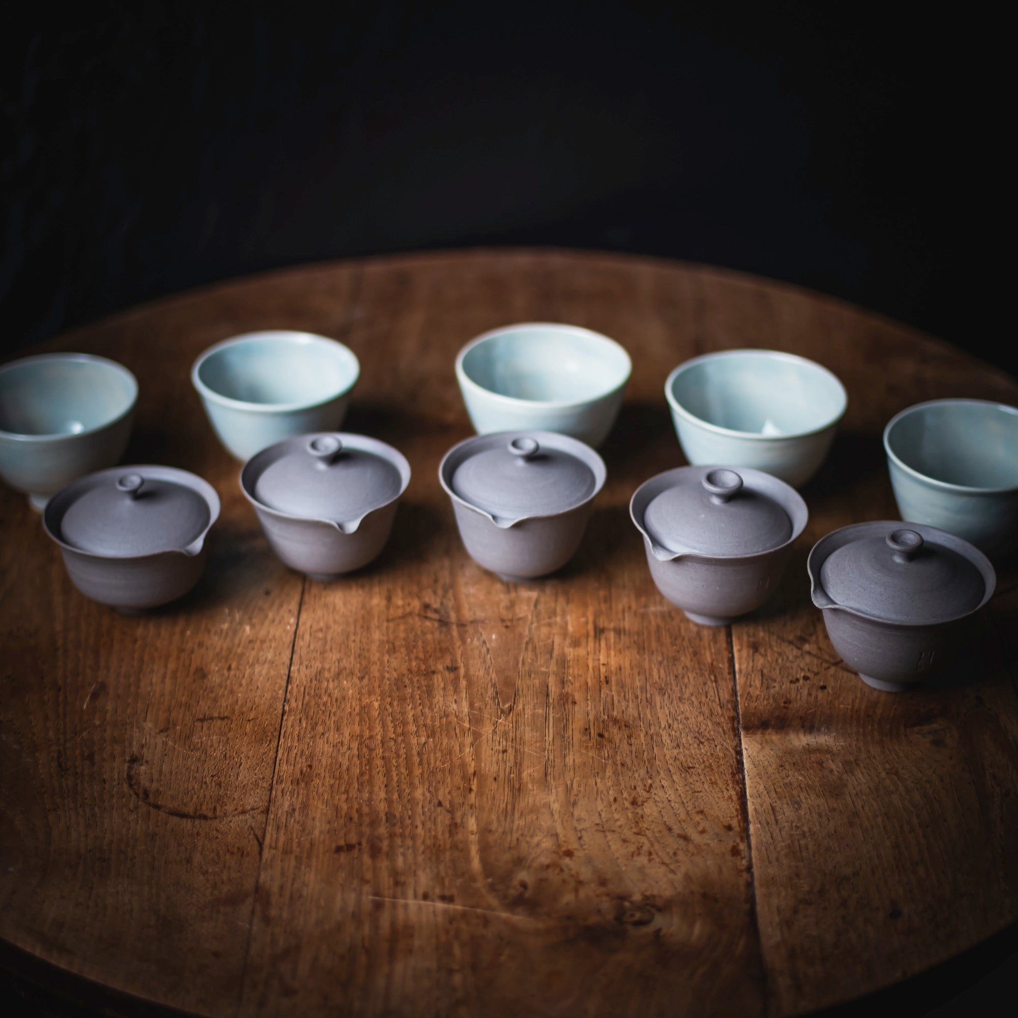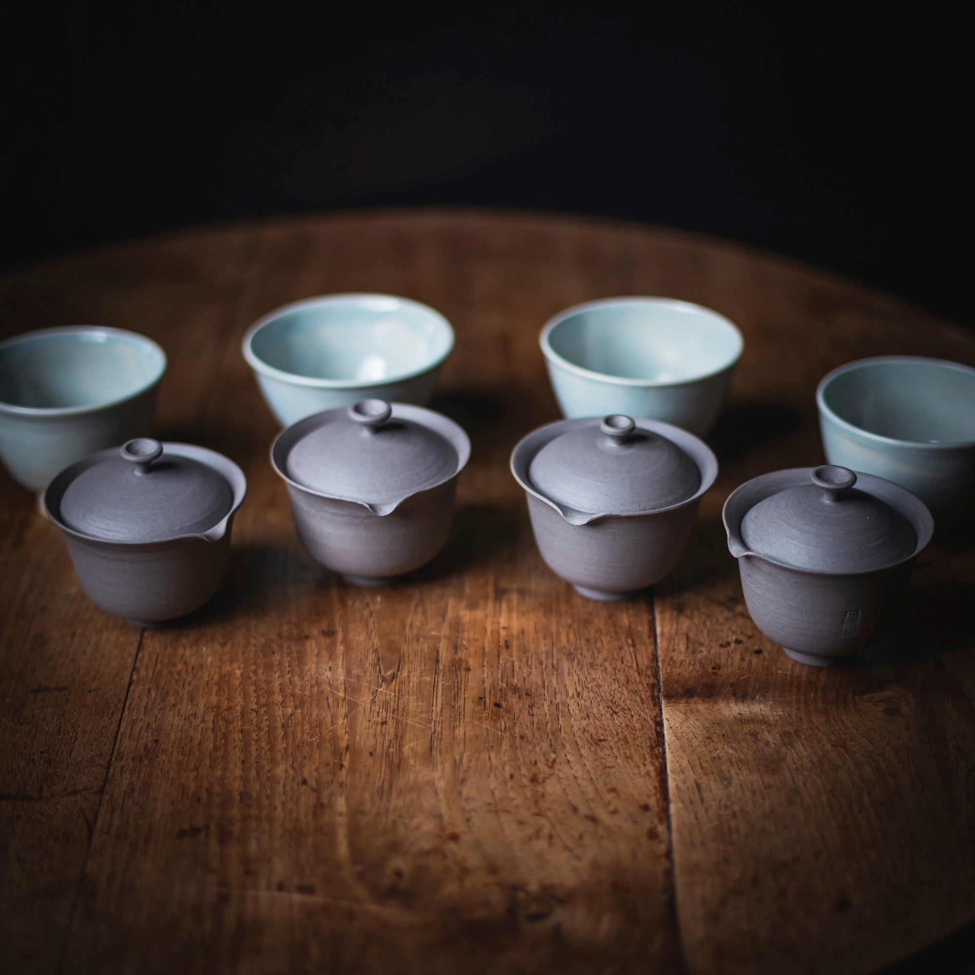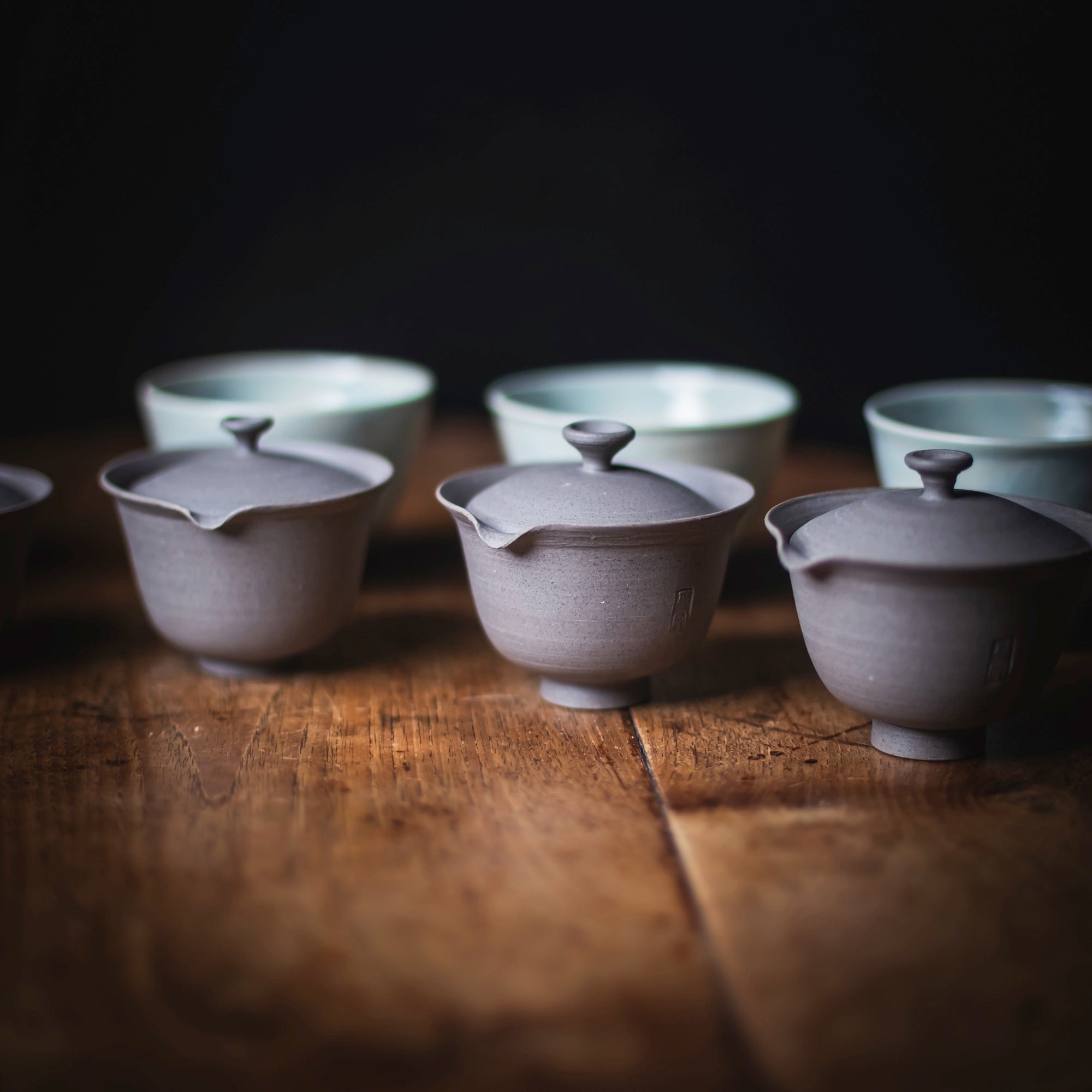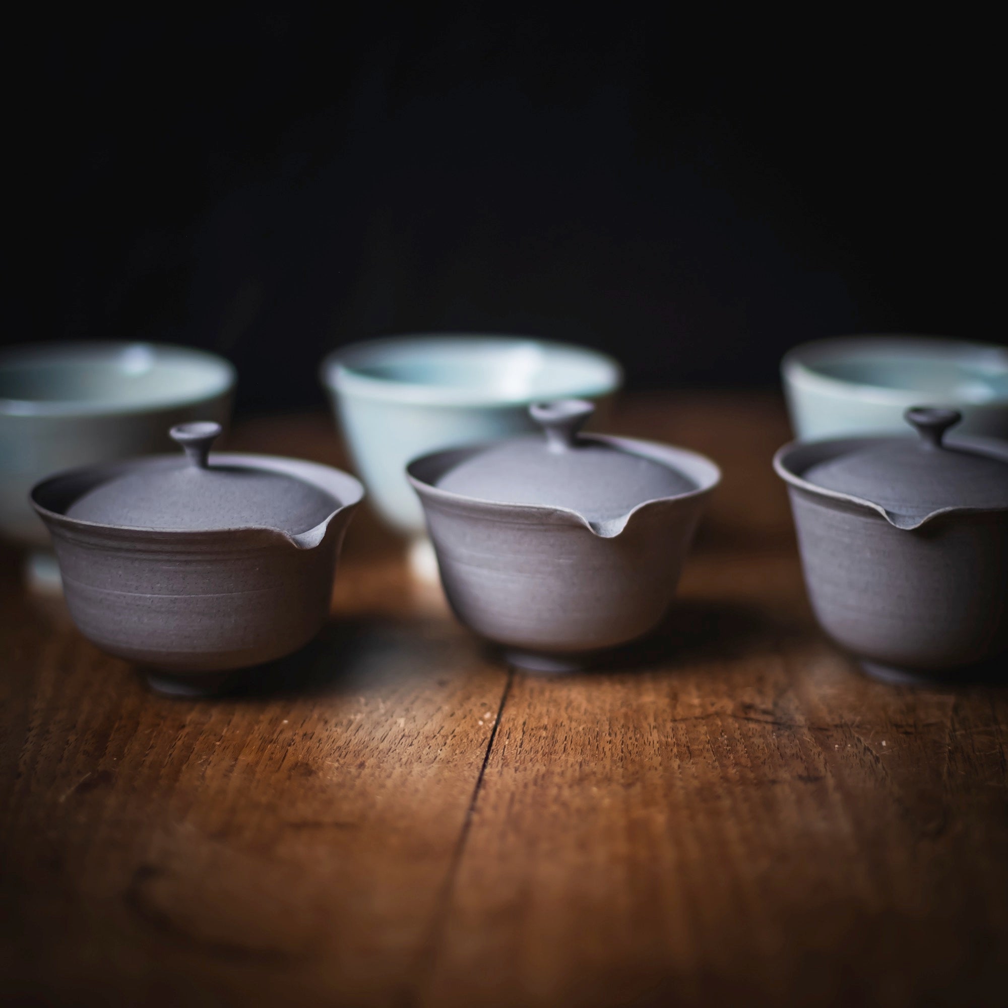 Qi Pottery Gaiwan Set "PingAn" grey (various sizes)